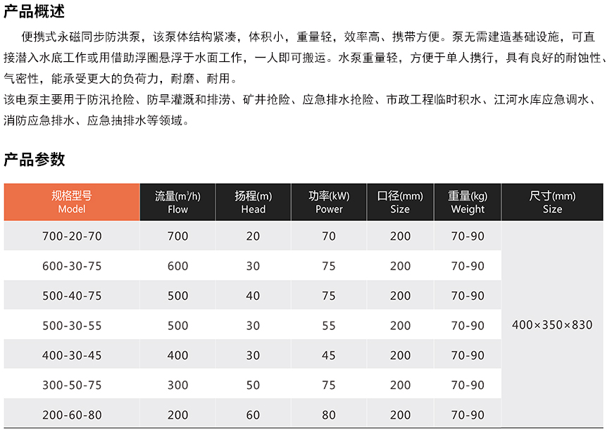便携式永磁同步防洪泵
